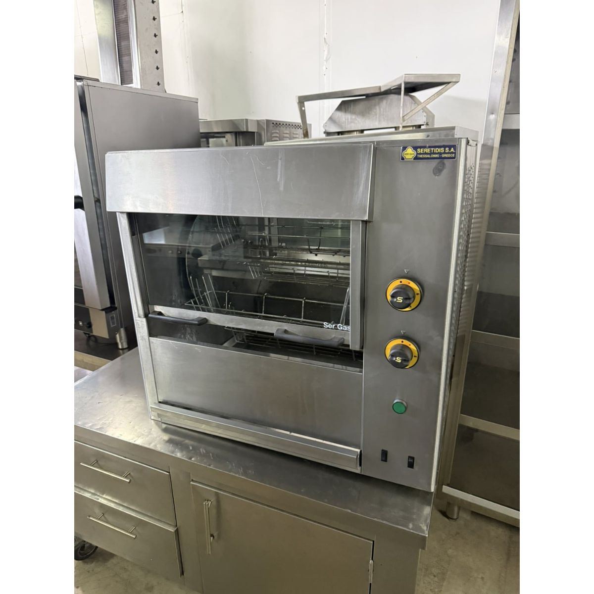 Κοτοπουλιέρα αερίου seretidis με 4 καλάθια για 16 κοτόπουλα. Τζάμι και στο πίσω μέρος